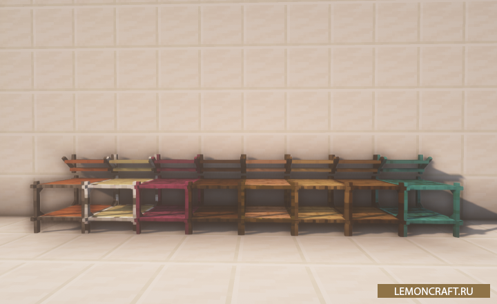Мод на стеллажи Racks добавляет в игру полки и стеллажи, принцип действия которых аналогичен простым сундукам, но при этом вместимость у них значительно выше. Создать такие полки и стеллажи можно из любого вида ванильного дерева. Кроме своей основной функции, хранение предметов, они будут выполнять и декоративную роль, ведь выглядят они достаточно красиво.